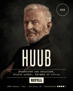 HUUB koffie markeert een nieuw hoofdstuk in Huub Stapels carrière. Naast zijn werk in film en theater deelt hij nu zijn liefde voor koffie met het publiek. Zijn nuchtere kijk op smaak en zijn inzet voor duurzaamheid en ethiek maken HUUB een opvallende nieuwe toevoeging aan de koffiewereld.
