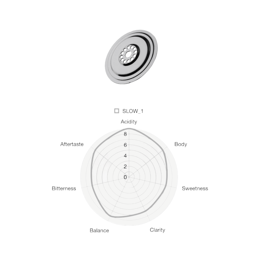 Wat de FLO Dripper uniek maakt, is de combinatie van twee verschillende filterstructuren in één ontwerp. De bovenste helft van de dripper heeft verticale ribbels, terwijl de onderste helft een gladde wand bevat met een centrale rib. Dit zorgt voor een gecontroleerde doorstroming, gelijkmatige extractie en een langere contacttijd tussen water en koffie. Het resultaat? Een rijke, complexe smaak met mooie helderheid en diepgang.
